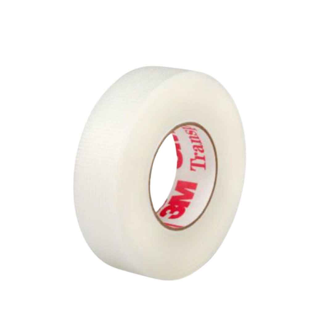 Cinta médica Transpore de 3M, transparente y macroperforada. Adhesión fuerte inicial, hipoalergénica y sin látex. Permite intercambio gaseoso de la piel. Corte bidireccional sin necesidad de tijeras.